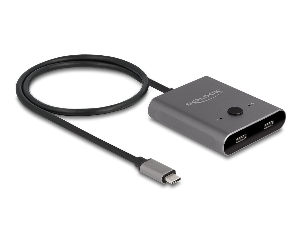 Este conmutador USB Type-C™ de Delock es un conmutador bidireccional manual que permite conectar diferentes dispositivos con puerto USB Type-C™. Este conmutador ofrece dos aplicaciones diferentes.