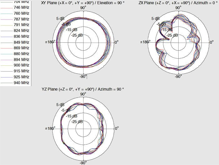 - 0.698 - 0.791 / 0.824 - 0.96 / 1.71 - 2.17 / 2.4 - 2.5 / 5.15 - 5.875 GHz