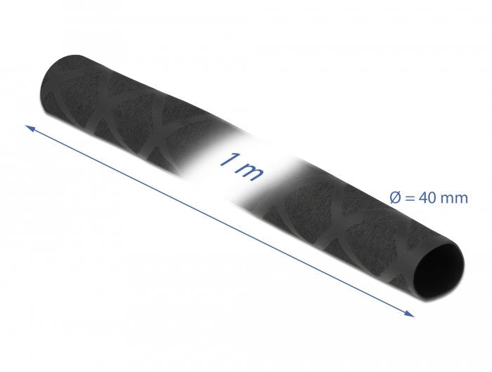 Este tubo termorretráctil de Delock se puede utilizar en una variedad de artículos que requieran un agarre antideslizante, p. ej. herramientas, aparatos de gimnasia, raquetas de tenis o cañas de pescar. Bajo el efecto del calor, el tubo encierra completamente la empuñadura y se contrae. Esto protege el agarre de los efectos de la influencia del clima y los daños mecánicos.