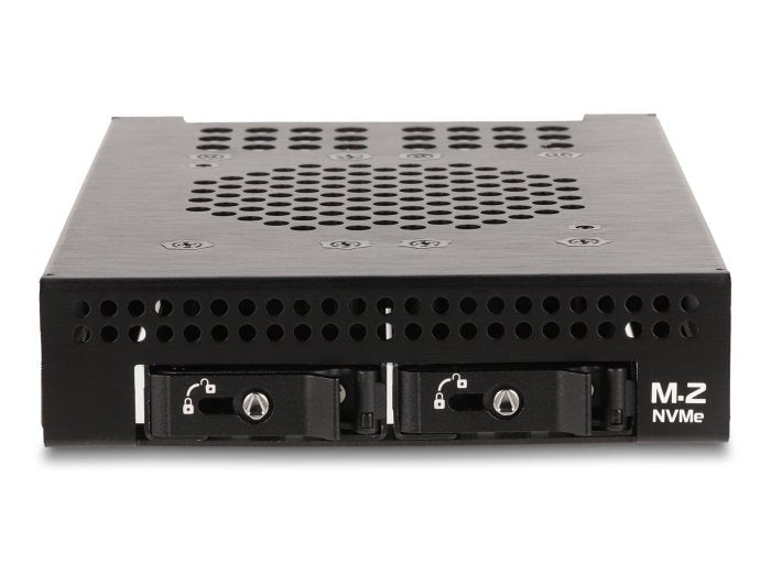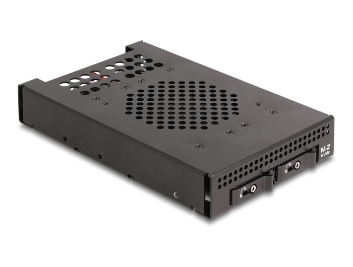 Este rack móvil de metal sólido de Delock se puede instalar en una bahía de 3.5″ de una PC y proporciona dos ranuras M.2 en formato 2280, 2260, 2242 o 2230.