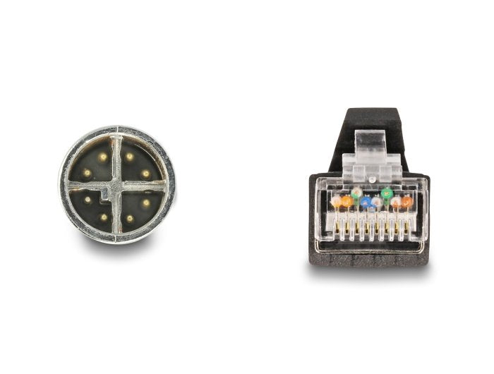 Se puede utilizar este cable Ethernet industrial de Delock para conectar varios componentes con conectores M12; por ejemplo, para el control de máquinas o la automatización.