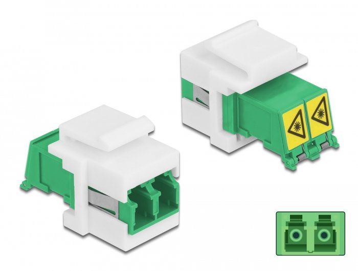 Este módulo Keystone con acoplador LC Duplex de Delock se puede usar para conectar dos conectores macho de fibra óptica entre sí. Es adecuado para el montaje en, por ejemplo, paneles de parcheo Keystone, placas frontales o cajas de montaje en superficie.