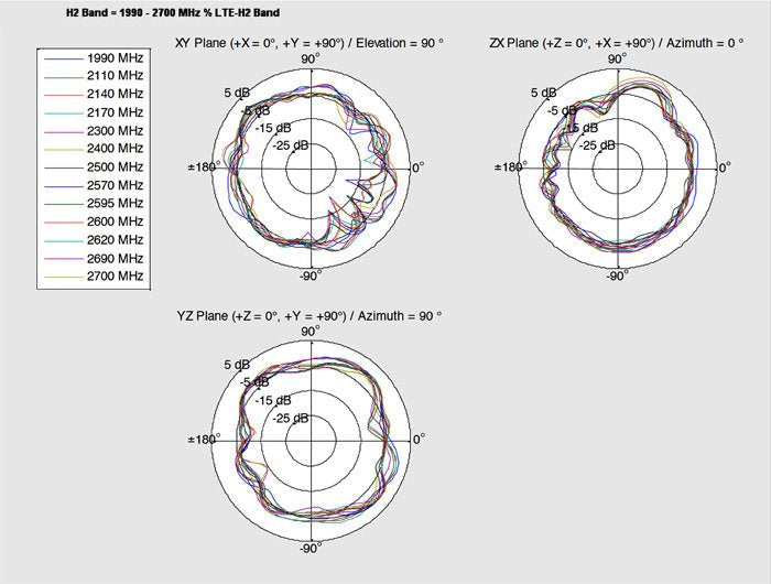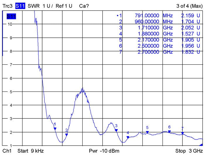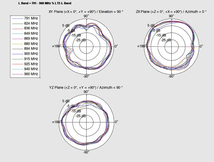 - Frecuencia de banda: 0.791 - 0.96 / 1.71 - 2.17 / 2.5 - 2.7 GHz