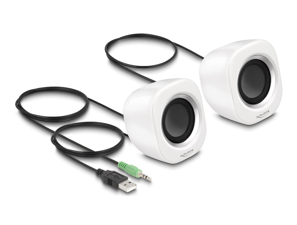 DeLOCK 27008, 2.0 canales, Alámbrico, 2 W, 100 - 18000 Hz, 4 Ω, Plata, Blanco
