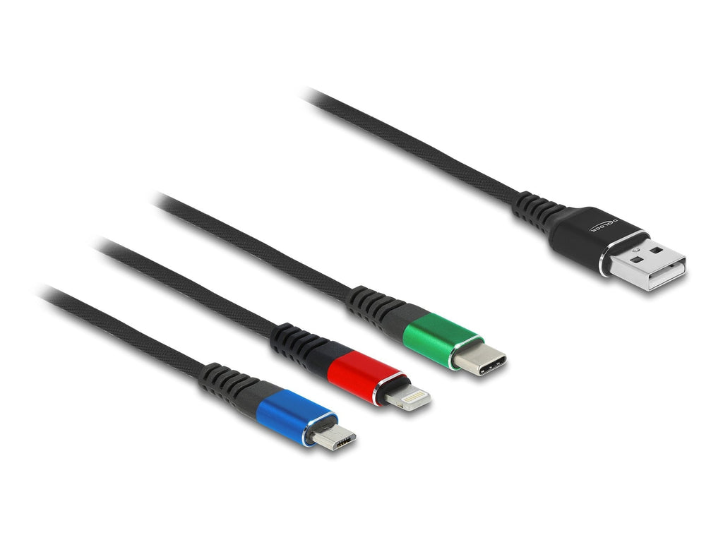 DeLOCK 90156, 2 m, USB A, Micro-USB B/Lightning/Apple 30-pin, USB 2.0, Negro, Azul, Verde, Rojo