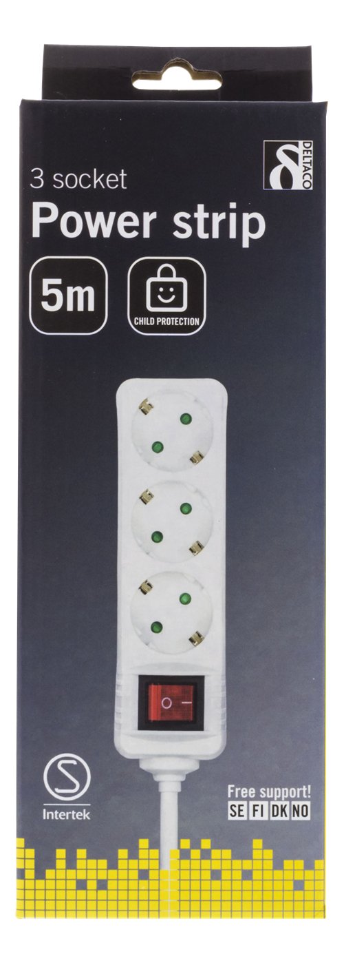 Deltaco GT-116D, 5 m, Interior, Tipo F, Blanco, 3 salidas AC, 3680 W