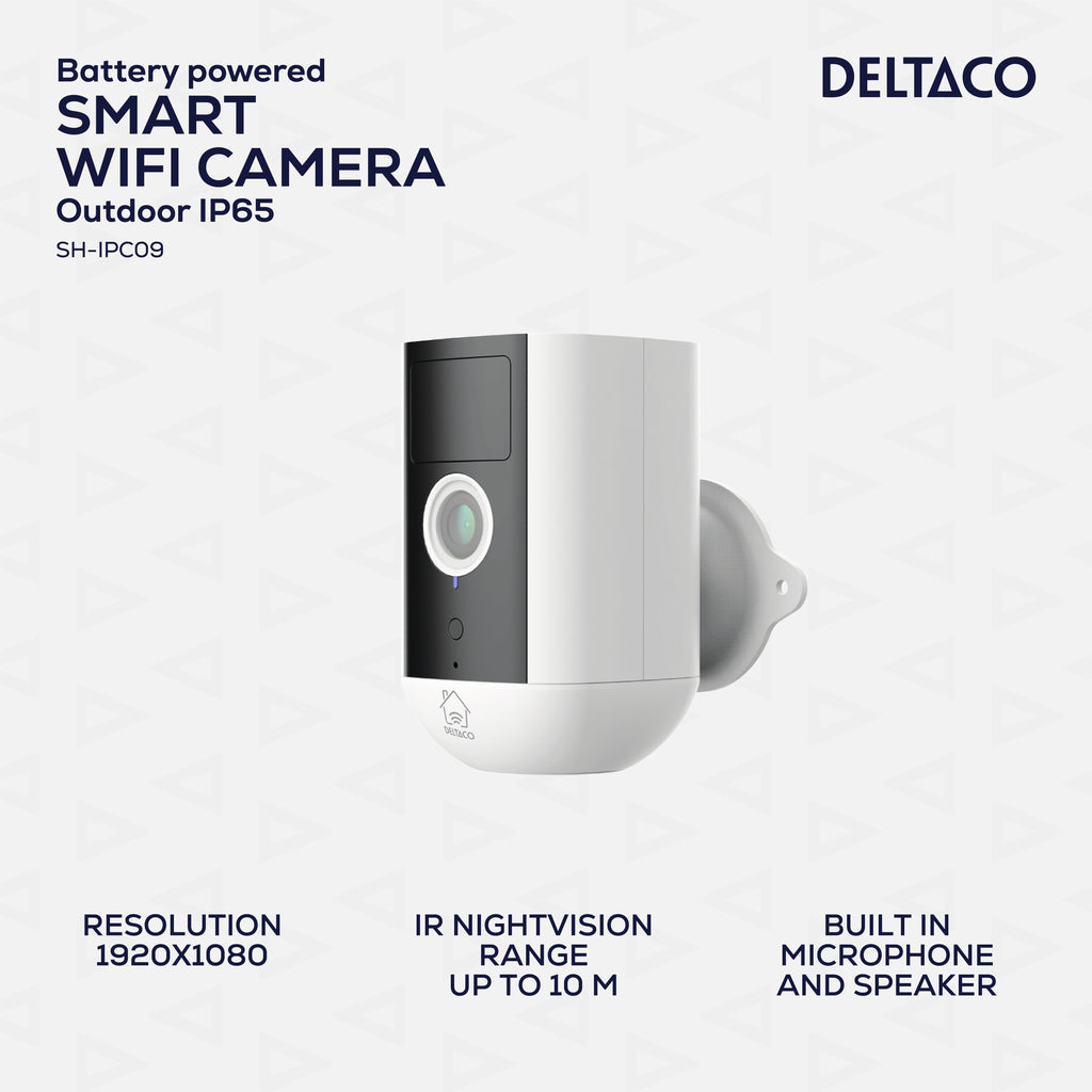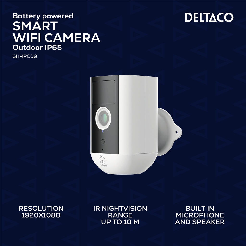 Deltaco SH-IPC09, Cámara de seguridad IP, Interior y exterior, Inalámbrico, Pared, Blanco, Torreta