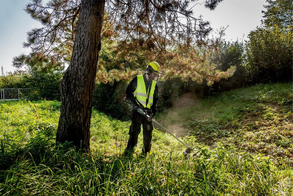 - Desbrozadora de batería silenciosa con empuñadura cerrada compacta para un trabajo efectivo, incluso en espacios estrechos