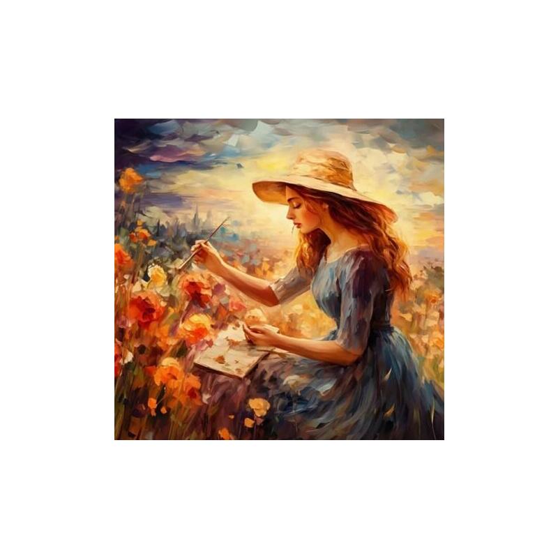 Diamentowa Mozaika - Kobieta W Kapeluszu