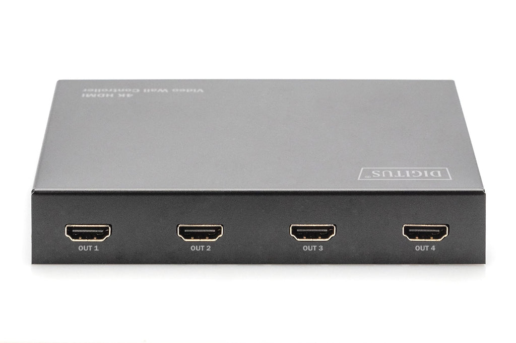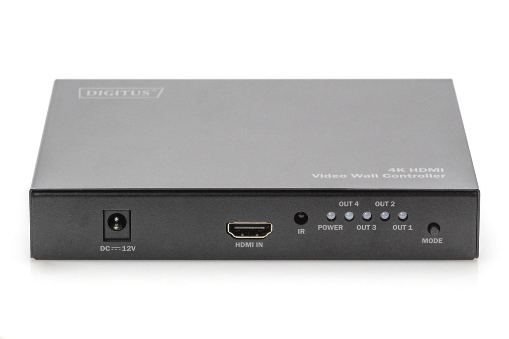 Con el DIGITUS® Video Wall Controller 2x2 puede convertir un total de 4 televisores o monitores con conexión HDMI en una gran pared de vídeo. El controlador permite distribuir una señal 4K de alta resolución entre 4 pantallas Full HD para formar una imagen de gran tamaño. No hay límites para su creatividad. Puede configurar una pared de vídeo clásica 2 x 2 o disponer de 2 a 4 monitores en sentido horizontal o vertical para combinarlos en una pared de vídeo. Pulsando un botón en el dispositivo o en el control remoto suministrado puede conmutar entre los diferentes modos. Además, el dispositivo ofrece una función de división que permite mostrar la misma imagen en todos los monitores. Con esta herramienta profesional está perfectamente equipado para visualizaciones de toda clase en ferias, publicidad o escaparates, manteniendo a la vez la máxima flexibilidad.