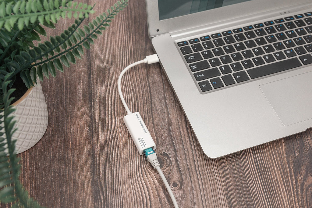 Con velocidades de hasta 5 Gbit/s, USB 3.0 se está convirtiendo rápidamente en el nuevo estándar en tecnología de transferencia de datos para PC y portátiles. Los ordenadores actuales sólo suelen tener conexiones Ethernet 10/100, mientras que los Macbooks Air, Ultrabooks™, subportátiles, etc. ya no tienen conexiones Ethernet. Los adaptadores USB 2.0 Gigabit Ethernet existentes están limitados por el estándar USB 2.0 a una velocidad máxima de transferencia de datos de 480 Mbps, mientras que nuestro adaptador DIGITUS® Gigabit Ethernet USB 3.0 alcanza velocidades de 1000 Mbps. Gracias a su bajo consumo de 200 mA, el adaptador también puede utilizarse sin problemas con un Macbook Pro y un Macbook Air. También es apto para videoconsolas compatibles sin toma RJ45.