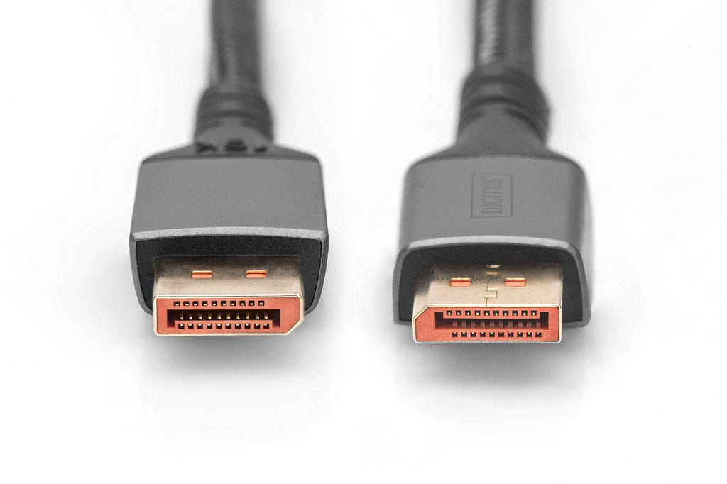 Con el estándar de cable 2.1, este cable DisplayPort soporta la tecnología más moderna y corresponde a todas las exigencias actuales: desde la reproducción de contenidos UHD 16K de alta resolución hasta la compatibilidad con codificaciones HDMI y DPCP. La versión HDCP 2.2 garantiza la transmisión segura de los contenidos y protege sus medios del acceso no autorizado. Duplique el escritorio de su ordenador portátil en un monitor grande o amplíe su escritorio con una pantalla adicional con DisplayPort. Este cable de alta calidad permite una transmisión de datos extremadamente rápida de hasta 80 Gbps sin tirones, incluso con aplicaciones gráficas exigentes o juegos. Este cable no solo soporta unas resoluciones impresionantes como 16K @ 60 Hz, 8K @ 120 Hz; además, admite otros formados, entre ellos 4K @240 Hz, 2K @ 240 Hz. Destaca por su versatilidad, que lo hace ideal para el uso con diferentes dispositivos y configuraciones de pantalla. Los contactos dorados y el apantallado doble del cable aseguran la máxima conductividad y la transmisión sin perturbaciones.
