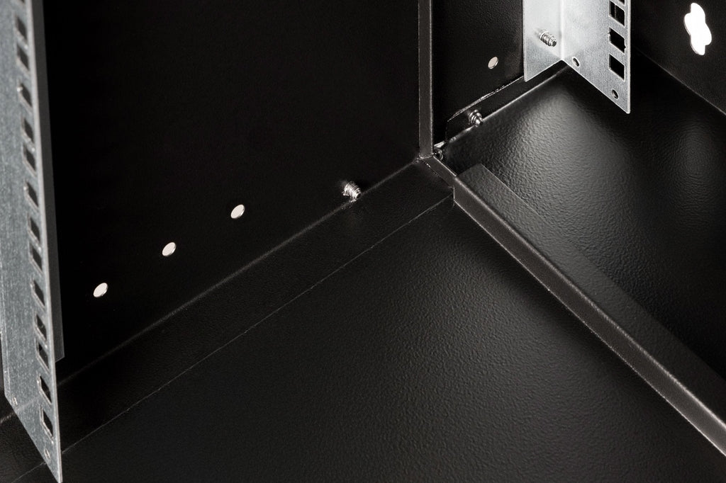 Ya sea en casa, en la oficina o para subdistribuidores con espacio limitado: Con las soluciones compactas de 483 mm (19") de la serie SOHO PRO, podrá instalar su red donde quiera. Disponibles en cuatro unidades de altura (4U, 7U, 9U, 12U), los armarios murales están equipados con una puerta de cristal completa y una entrada de cables en la parte superior e inferior. En el interior se instalan dos pares de raíles de perfil galvanizado de 483 mm (19") etiquetados con unidades de altura legibles. Estos pueden ajustarse en profundidad. Cada armario es una robusta construcción de chapa de acero de hasta 1,5 mm de espesor. La coloración se realiza mediante recubrimiento electrostático en polvo en los colores estándar gris (RAL 7035) y negro (RAL 9005). Las bisagras de la puerta pueden cambiarse. Los armarios de red se suministran desmontados en un paquete plano optimizado. El montaje se realiza en pocos pasos y es un juego de niños gracias a las instrucciones paso a paso que se adjuntan.