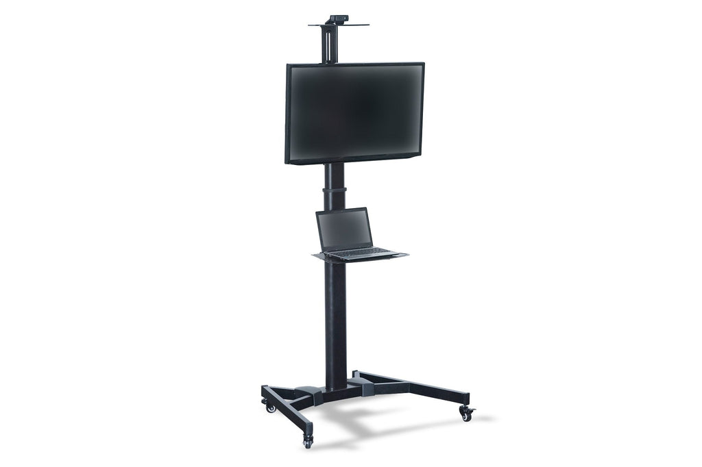 Nuestro carro de TV ofrece una solución flexible para las reuniones o cursos. Gracias a las cuatro ruedas se puede mover fácilmente y gracias a la función de bloqueo ofrece una posición segura. Con los dos estantes para reproductores de DVD, ordenadores portátiles y cámaras tiene suficiente espacio para dar cabida a todos los equipos necesarios. El carro es apto para la instalación de monitores de entre 94 a 178 cm y un peso máximo de 50 kg. Gracias al ajuste de altura de hasta 218 cm y al ángulo de inclinación de hasta 10 grados, el monitor se puede ver cómodamente también desde lejos. El carro de televisión es apto para televisores led, LCD y plasmas de todas las marcas.