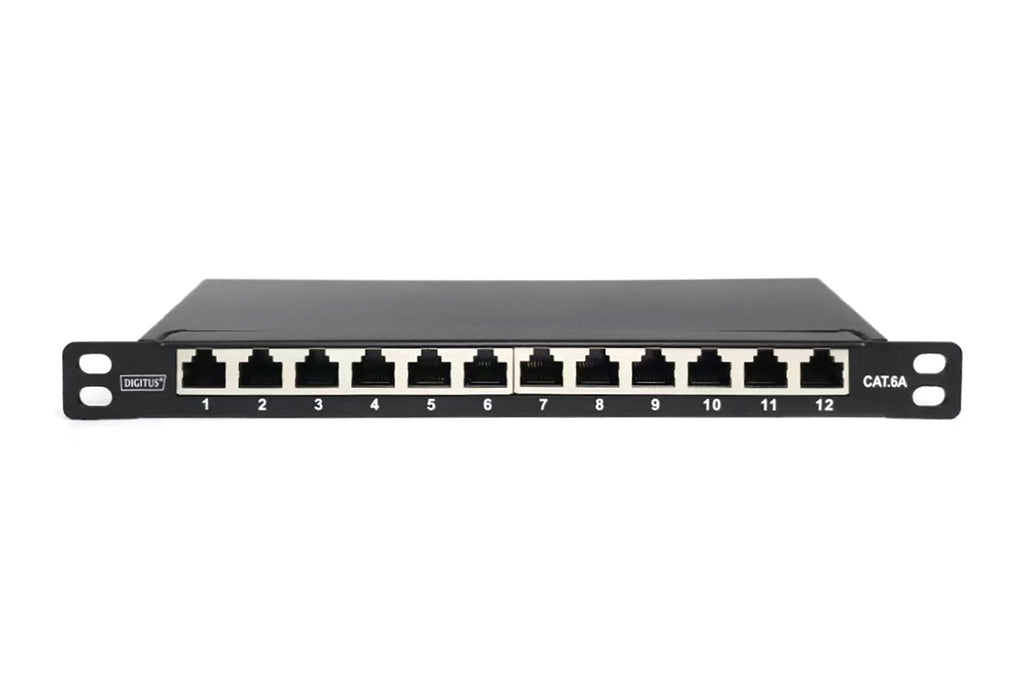 El panel de conexiones DIGITUS® de 12 puertos ofrece una densidad de empaquetamiento muy alta con sólo 0,5 U. Esto significa que se pueden realizar hasta 24 puertos en 1 U con dos paneles de 0,5 U. El panel de conexiones está apantallado. El contacto de apantallamiento de 360° de los cables garantiza las mejores características de rendimiento. Los cables de instalación pueden fijarse de forma segura con las abrazaderas de cable integradas. El cierre rápido de la carcasa garantiza un acceso sencillo y sin herramientas a los terminales de corte LSA. Cumple las normas 802.3at PoE+ y 802.3af PoE.