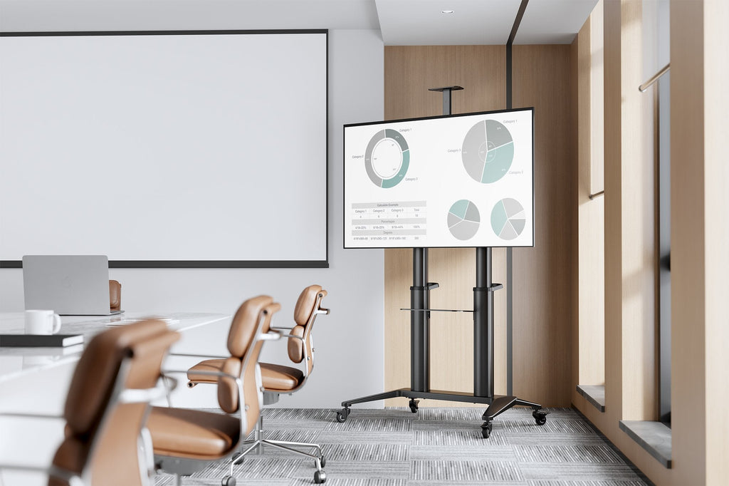El Collaboration Trolley/carro de presentación para televisor ofrece la posibilidad de posicionamiento flexible de una pantalla (70-120", máx. 140 kg)