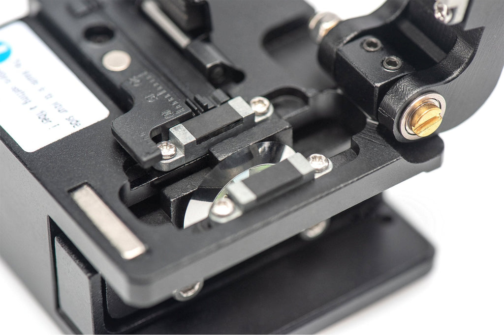 La herramienta de empalme se puede utilizar para diferentes tipos de fibra. Gracias a su diseño compacto y su peso reducido se puede utilizar en cualquier lugar y es ideal para la preparación de conectores confeccionables sobre el terreno u operaciones de empalme ocasionales. La cuchilla tiene una vida útil de 48 000 cortes del núcleo de fibra con una elevada precisión. A continuación, la cuchilla se puede cambiar fácilmente.