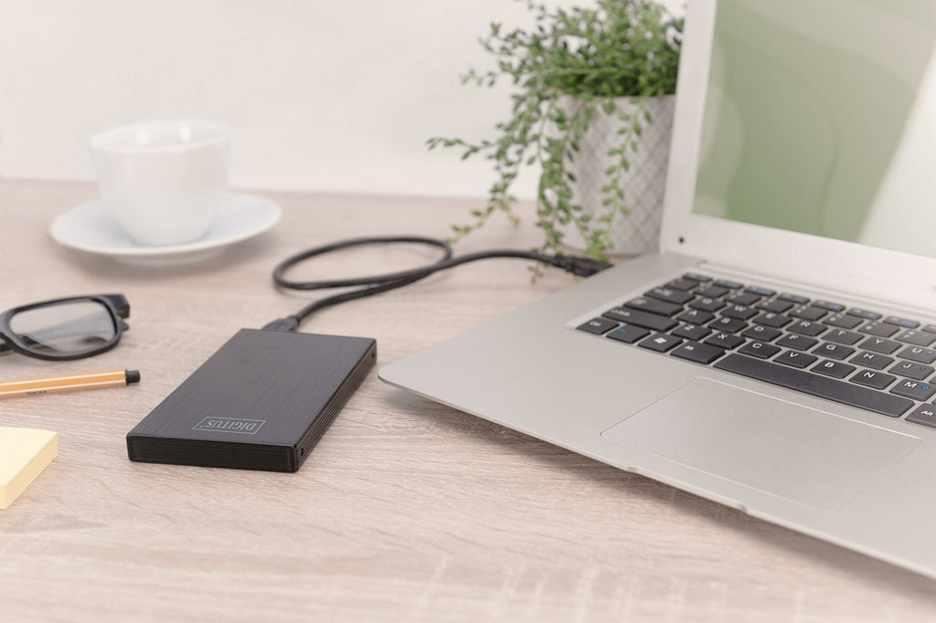 La caja para disco duro externo DIGITUS SSD/HDD le proporciona flexibilidad para utilizar su SSD/HDD con una carcasa moderna y con una forma atractiva. El sencillo manejo le hace posible la rápida instalación de un disco duro SATA I-III SSD/HDD de 2,5" (9,5 o 7 mm). La elegante y delgada carcasa de aluminio le facilita transportar sus datos cómodamente y acceder rápidamente a ellos en cualquier lugar. No se necesita un adaptador de red adicional, la alimentación se realiza a través del puerto USB.