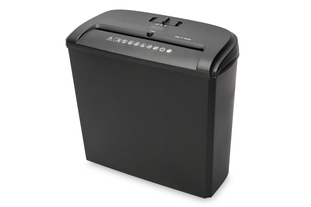 - Capacidad de trituración: cinco (5) hojas DIN A4 de una vez para una destrucción de datos óptima y rápida