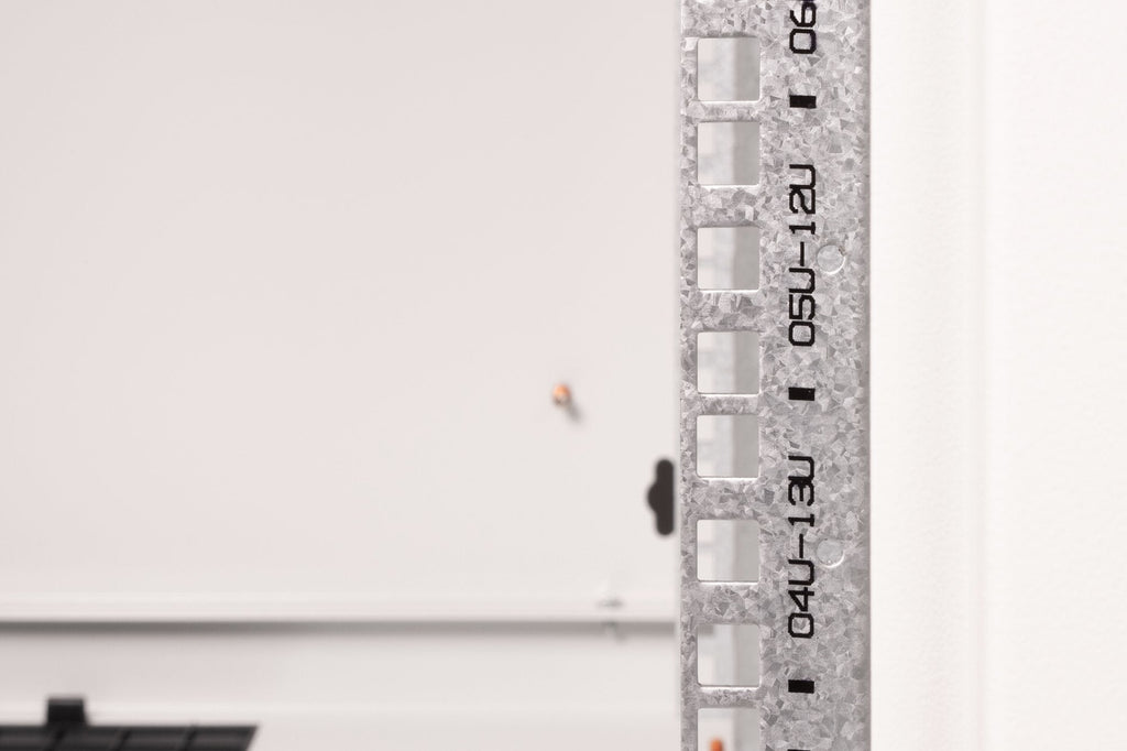 Los armarios de red para el montaje en la pared de la serie Unique han sido desarrollados para el cableado especialmente cómodo y flexible de redes. En el techo de cada armario se encuentra una entrada de cable deslizante con junta de caucho. El panel posterior y la chapa base están dotados de entradas para cables troqueladas con cubierta de plástico. Para el alojamiento de un módulo ventilador se incluye además una zona troquelada en el chasis de techo. En el interior está instalado dos pares de guías de perfil de 483 mm (19") galvanizadas y rotuladas con unidades de altura legibles desde ambos lados. Estas se pueden ajustar en profundidad. Cada armario es una robusta construcción de acero, hecha de chapa de acero con un grosor de hasta 1,5 mm. El proceso de pintado se realiza en forma de un recubrimiento de polvo electrostático en los colores estándar gris (RAL 7035) y negro (RAL 9005). Las paredes laterales modulares desmontables y con cerradura y la puerta frontal desmontable y con cerradura facilitan el acceso. Es posible cambiar de lado las bisagras de las puertas. El montaje en la pared se realiza en dos pasos sencillos: El bastidor de la carcasa se atornilla en la pared y se conecta después con la carcasa. Con las patas niveladoras o ruedas disponibles como opción, las carcasas de pared de la serie Unique también se pueden utilizar de forma independiente.