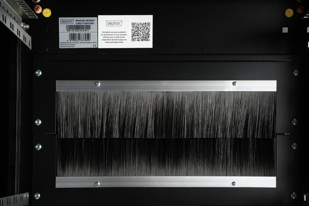 Los armarios de red de la serie Unique se han diseñado y fabricado para un cableado de red especialmente cómodo y flexible. Las sofisticadas optimizaciones ofrecen una estabilidad acorde con el mercado con la máxima flexibilidad. Un chasis base modular, que puede abrirse mediante paneles ciegos atornillados de 483 mm (19"), ofrece espacio suficiente para cables de todo tipo. También hay entradas de cables con cepillos en la parte trasera del chasis base. Las bandas de escobillas traseras situadas encima y debajo de la puerta trasera (a partir de 26U) permiten su uso en una amplia gama de escenarios de aplicación. Los amplios conductos de cables verticales con ayudas para el guiado de cables y tapa, instalados en la parte delantera (a partir de 800 mm de ancho de armario), completan a la perfección las versátiles características del armario de red. En el interior hay instalados dos pares de carriles de perfil de 483 mm (19") galvanizados y con manivela, etiquetados con unidades de altura que pueden leerse en direcciones opuestas. Se pueden ajustar de forma continua y están conectados a puntales de profundidad adicionales en el armario. Cada armario es una robusta construcción de chapa de acero de hasta 1,5 mm de grosor. La coloración se realiza mediante recubrimiento electrostático en polvo en los colores estándar gris (RAL 7035) y negro (RAL 9005). Los paneles laterales y las puertas modulares bloqueables y desmontables mejoran la accesibilidad. Las bisagras de las puertas se pueden cambiar. Además, los armarios pueden desmontarse completamente en caso necesario gracias a su diseño desmontable.