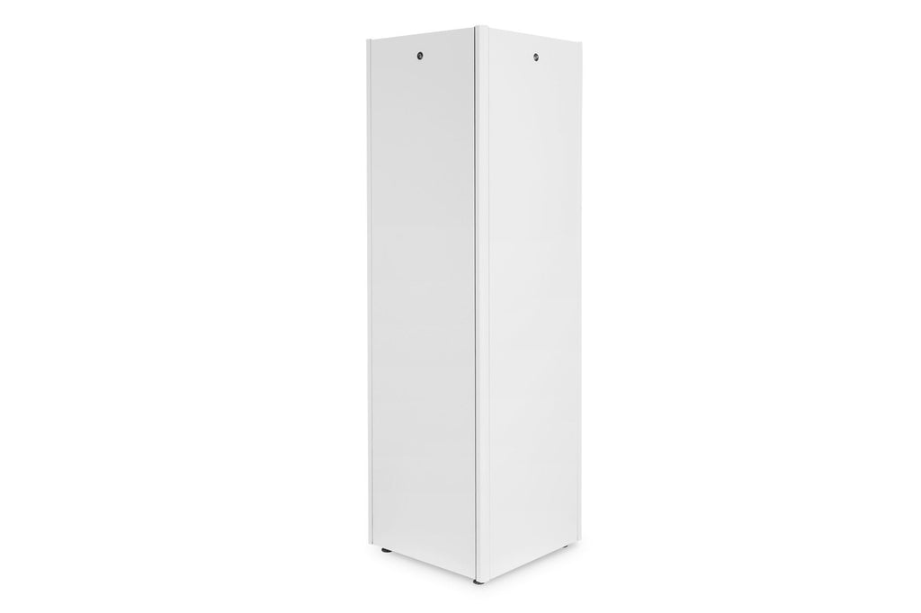 Los armarios de red de la serie Dynamic se han desarrollado para ampliar la red de forma sencilla y especialmente rentable. La sofisticada colocación de las entradas de cables garantiza una instalación sin esfuerzo en función de la aplicación. En los chasis de suelo, ésta se encuentra en el centro de la zona trasera, protegida por una placa de cubierta atornillada. Los armarios a partir de 800 mm de ancho se amplían adicionalmente con entradas de cables con tapas de plástico a izquierda y derecha. Éstas también están integradas en el techo (1 x para anchura de armario de 600 mm, 3 x para anchura de armario de 800 mm). El chasis del techo dispone además de una zona troquelada para alojar un módulo de ventilador. En el interior hay instalados dos pares de raíles perfilados galvanizados de 483 mm (19"), etiquetados con unidades de altura legibles en ambas direcciones. Pueden ajustarse en profundidad y están conectados a puntales de profundidad adicionales en el armario. Cada armario es una robusta construcción de chapa de acero de hasta 1,5 mm de grosor. La coloración se realiza mediante recubrimiento electrostático en polvo en los colores estándar gris (RAL 7035) y negro (RAL 9005). Los paneles laterales y traseros extraíbles, así como la puerta delantera con cerradura y extraíble, mejoran la accesibilidad. Las bisagras de la puerta pueden cambiarse. Además, los armarios pueden desmontarse completamente en caso necesario gracias a su diseño desmontable.