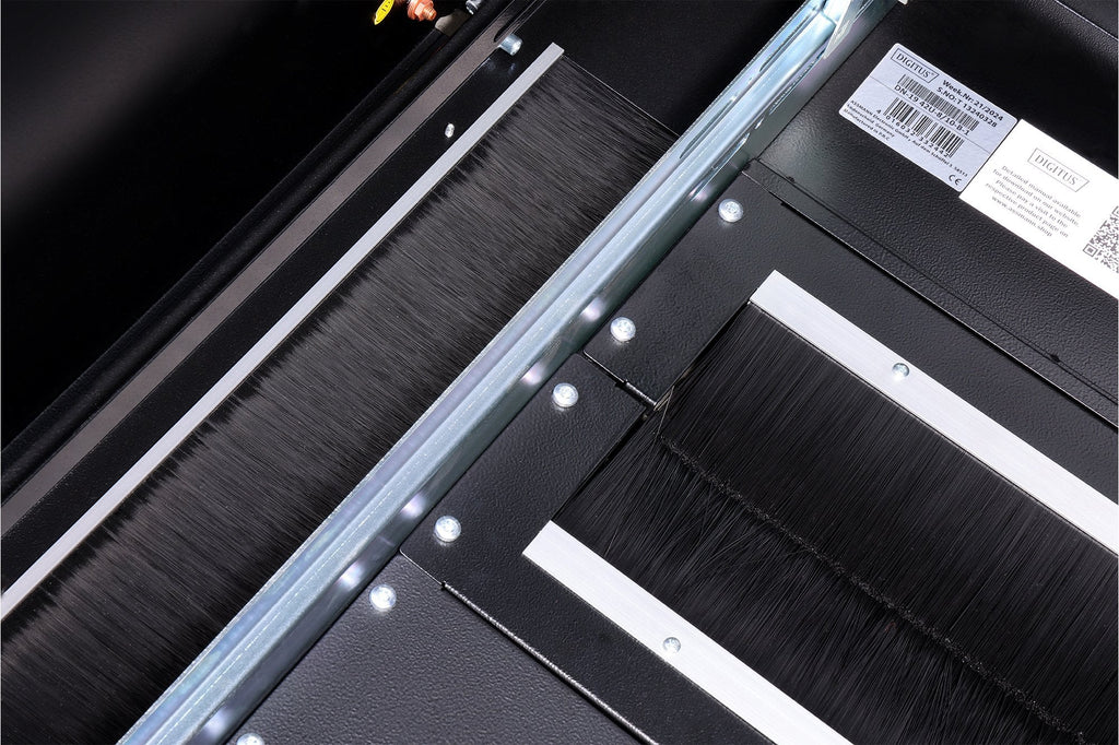 - Opciones flexibles de guiado de cables gracias a las generosas entradas de cables con cepillos en el techo, la base y la parte trasera