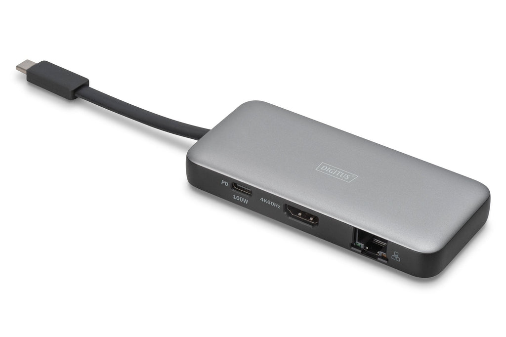Digitus DA-70916 base para portátil y replicador de puertos Alámbrico USB 3.2 Gen 2 (3.1 Gen 2) Type-C Negro, Gris