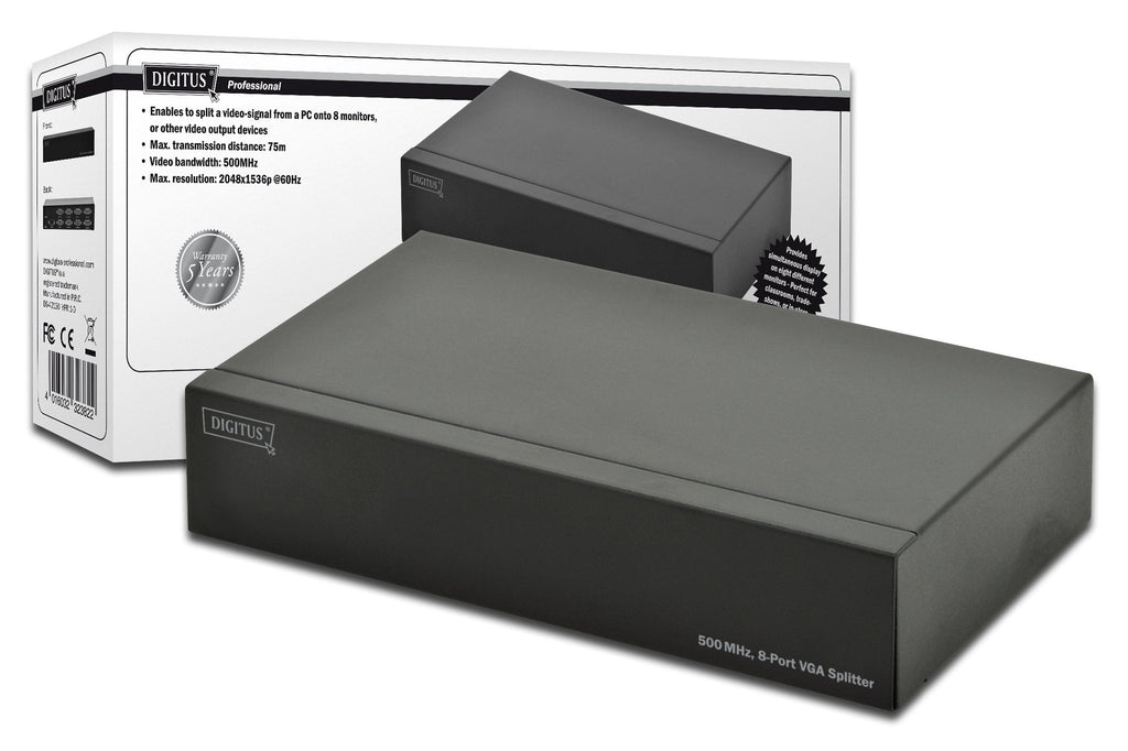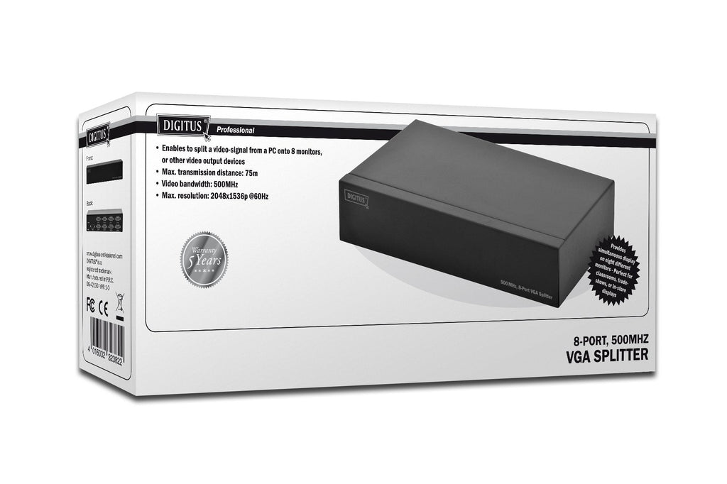 Digitus DS-42130, VGA, 8x VGA, D-Sub 15/M, 2048 x 1536 Pixeles, Negro, 75 m