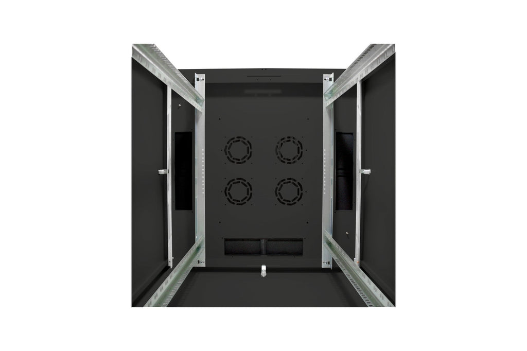 Los armarios de red de la serie Dynamic se han desarrollado para ampliar la red de forma sencilla y especialmente rentable. La sofisticada colocación de las entradas de cables garantiza una instalación sin esfuerzo en función de la aplicación. En los chasis de suelo, ésta se encuentra en el centro de la zona trasera, protegida por una placa de cubierta atornillada. Los armarios a partir de 800 mm de ancho se amplían adicionalmente con entradas de cables con tapas de plástico a izquierda y derecha. Éstas también están integradas en el techo (1 x para anchura de armario de 600 mm, 3 x para anchura de armario de 800 mm). El chasis del techo dispone además de una zona troquelada para alojar un módulo de ventilador. En el interior hay instalados dos pares de raíles perfilados galvanizados de 483 mm (19"), etiquetados con unidades de altura legibles en ambas direcciones. Pueden ajustarse en profundidad y están conectados a puntales de profundidad adicionales en el armario. Cada armario es una robusta construcción de chapa de acero de hasta 1,5 mm de grosor. La coloración se realiza mediante recubrimiento electrostático en polvo en los colores estándar gris (RAL 7035) y negro (RAL 9005). Los paneles laterales y traseros extraíbles, así como la puerta delantera con cerradura y extraíble, mejoran la accesibilidad. Las bisagras de la puerta pueden cambiarse. Además, los armarios pueden desmontarse completamente en caso necesario gracias a su diseño desmontable.