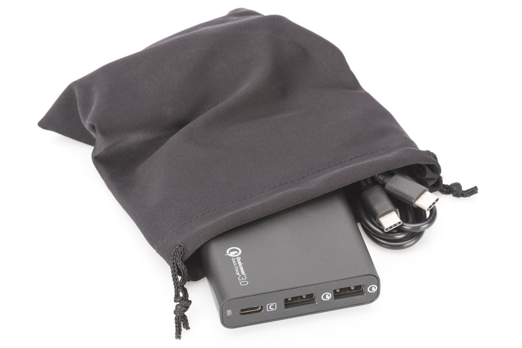 El cargador USB universal del viaje de Digitus le ofrece la oportunidad de cargar todos sus dispositivos (portátil, ultrabook, convertible, tablet, smartphone, etc.). Gracias a los tres cables de alimentación suministrados (UE, Estados Unidos, Reino Unido), se puede utilizar en más de 100 países. Tiene un puerto de carga USB-C (PD 2.0) que permite cargar notebooks/ultrabooks, smartphones y tablets de forma rápida y eficiente. También incluye dos puertos de carga USB 3.0 Qualcomm® Quick Charge™ que se pueden utilizar para cargar cualquier dispositivo móvil (tablet, smartphone, cámara, etc.). La potencia máxima del cargador es de 40W. El compañero perfecto ya sea por negocios o por placer, en el hogar o en la carretera. Una estación de carga para todo - el cargador USB universal de viaje Digitus.