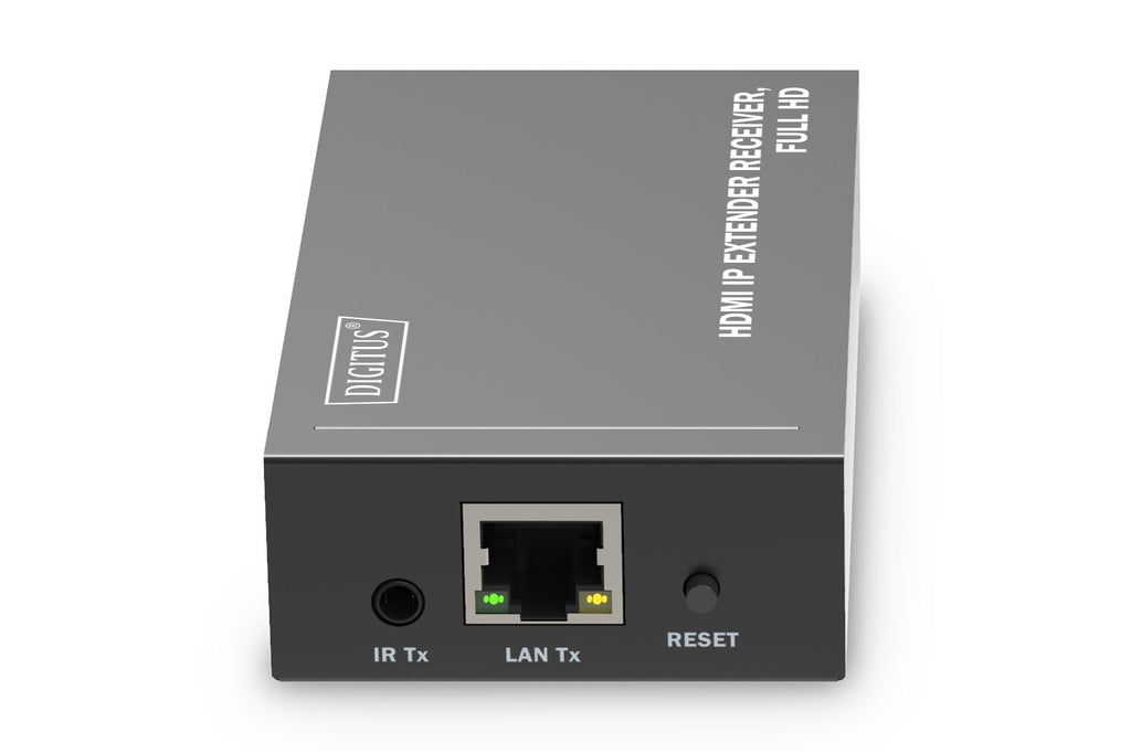 Amplíe el kit extensor HDMI IP (DS-55517) con unidades receptoras adicionales para reproducir sus contenidos AV en varios monitores a la vez. El kit prolonga las señales AV Full HD a través de un cable de red CAT6 (conexión punto a punto) a máx. 120 m. Además, con conmutadores de red y las distintas unidades receptoras (DS-55518) puede distribuir sus contenidos de vídeo a través de la red existente (conexión IP) a hasta 253 pantallas y prolongarlos a una distancia ilimitada.
