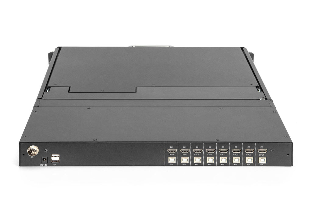 Gracias a su diseño modular, la consola DIGITUS® HD TFT de 19" ofrece una amplia gama de opciones de configuración individuales, de modo que la consola puede personalizarse para adaptarla al ámbito de aplicación. De este modo, la consola ahorra costes y puede ampliarse o transformarse con módulos adicionales en cualquier momento. La configuración flexible garantiza que la consola esté preparada para el futuro. La consola modular consta de un monitor de 19", un conmutador KVM HDMI de 8 puertos y el panel táctil.