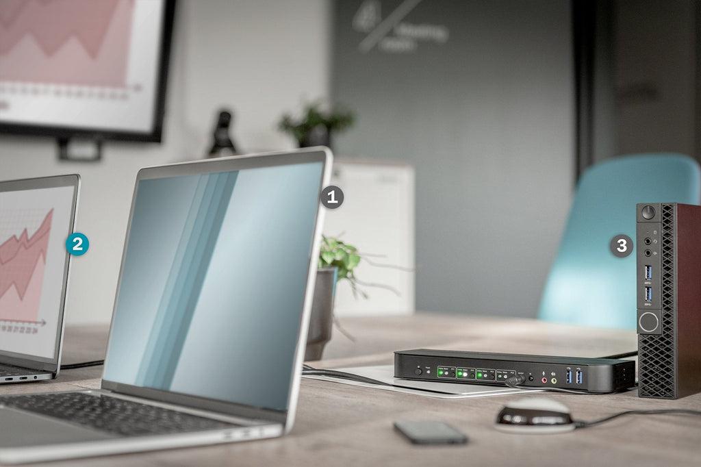 - Entradas: 4 x DisplayPort™, 4 x USB B (3.0), 4 x entrada de audio, 4 x salida de audio.