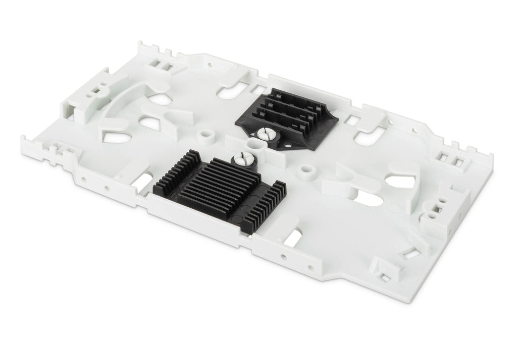 Casete de empalme compacto para el almacenamiento estructurado de empalmes de hasta 12 fibras. Admite la protección de empalmes por crimpado y por contracción con soportes integrados. Protege de forma fiable las fibras empalmadas en paneles de conexión o carcasas.
