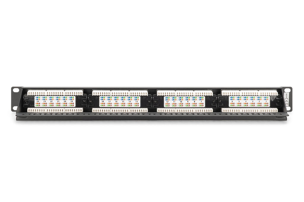 El panel de interconexión CAT 6 sin apantallar de DIGITUS® está disponible como variante de 16 ó 24 puertos (1 unidad de rack) o de 48 puertos (2 unidades de rack). Está fabricado conforme a los requisitos de la clase de rendimiento de enlace E, para hasta 250 MHz, ISO/IEC 11801 y EN 50173 y cuenta con certificación UL. La carcasa es de acero laminado en frío galvanizado de 1,5 mm, por lo que es perfectamente apta para montaje en rack de 19".