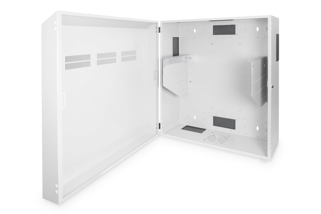 La carcasa de pared de 483 mm (19“) de la serie Slim permite realizar la instalación en vertical de 6 U de profundidad. Gran ahorro de espacio para redes, DVR, sistemas de sonido, aplicaciones de localización y de conexión u otros componentes activos de 483 mm (19 ").