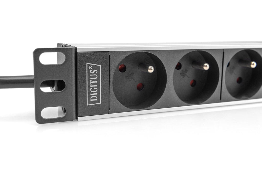 Las regletas DIGITUS® son la solución perfecta para su armario de red o servidor. En términos de distribución de energía, la PDU cumple los requisitos de muchas aplicaciones en TI, tecnología de redes, laboratorios y el hogar. La regleta puede montarse en la zona de 10" del armario en 1U para ahorrar espacio.