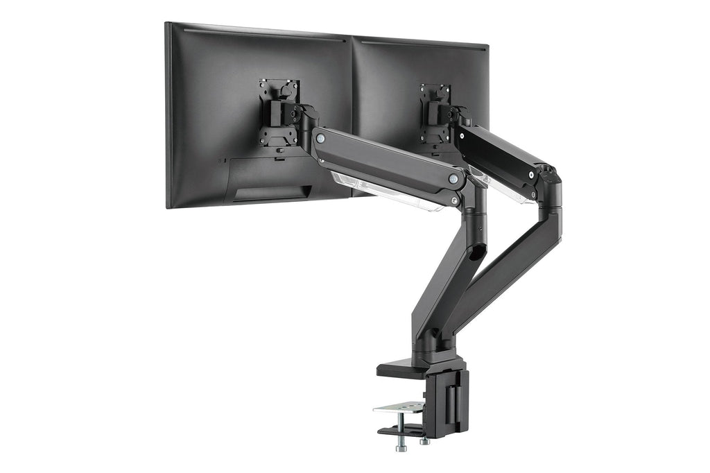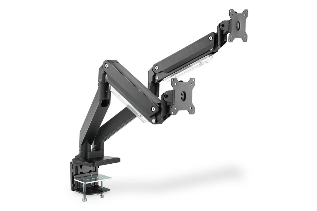 Con el soporte universal para monitor de DIGITUS® podrá fijar cómodamente un monitor de 15" a 35" a su escritorio mediante un soporte de pinza. La función de liberación rápida también le facilita la instalación del monitor. El soporte VESA simplemente se introduce en el soporte correspondiente y se bloquea automáticamente. Puede ajustar fácilmente el monitor a sus necesidades y girar, inclinar o rotar el propio monitor, por ejemplo, para monitores de formato vertical. El soporte del resorte de presión de gas integrado le facilita el ajuste de la altura del monitor. Además, los cables del monitor se pueden guiar de forma ordenada a través de las guías de cables suministradas. Haga algo bueno por usted y por su salud ajustando el monitor de forma óptima a su cuerpo y a su posición sentada.