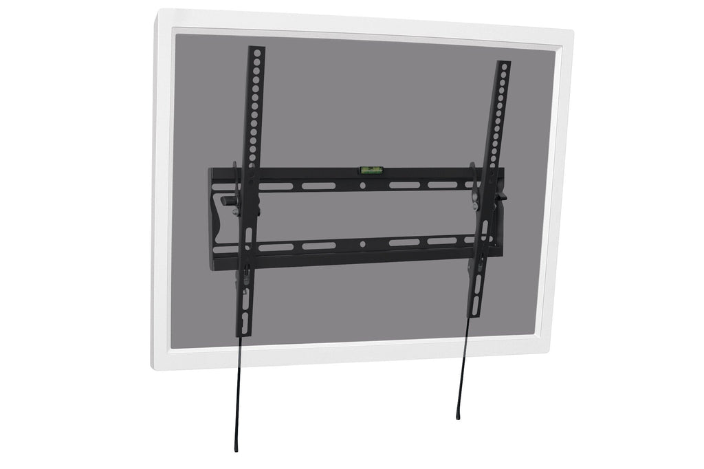 Soporte de pared universal para montaje por encima del ángulo de visión directo gracias al ajuste de la inclinación de hasta 10 grados. Gracias al nivel de burbuja incluido podrá realizar la instalación en la pared de forma sencilla y precisa. Suspensión segura del televisor mediante el bloqueo por resorte. El soporte de pared universal permite instalar televisores LED, LCD o de plasma de todas las marcas. Tenga en cuenta las medidas VESA y el peso de su televisor para seleccionar el soporte de pared adecuado.