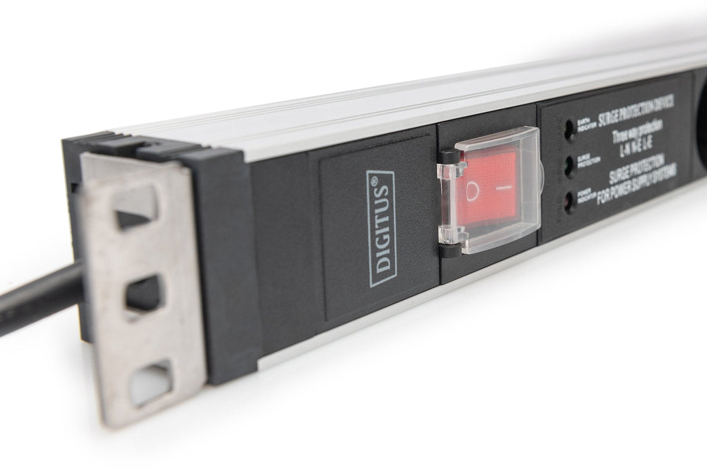 Las regletas de enchufes DIGITUS® son la solución perfecta para su armario de red o de servidores. Con vistas a la distribución de corriente, la PDU cumple los requisitos de numerosas aplicaciones en los ámbitos de TI, tecnología de redes, laboratorios, así como en el hogar. La regleta de enchufes se puede montar en poco espacio en 1UA en armarios de 19". Un filtro de red y una protección contra sobretensiones protegen a los consumidores conectados de interferencias desde la red. Según el tipo de armario existe la posibilidad de fijar la regleta de enchufes con las tomas hacia la derecha o hacia la izquierda.