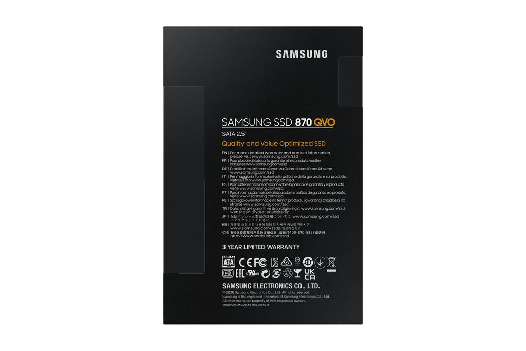 El 870 QVO está disponible en 1, 2, 4 y 8TB, y el modelo de 8TB es, con mucho, el SSD SATA de más capacidad a nivel de usuario. Con el 870 QVO, podrás disfrutar y escalar puestos en el mayor entorno informático SSD de la historia y con un precio más accesible.