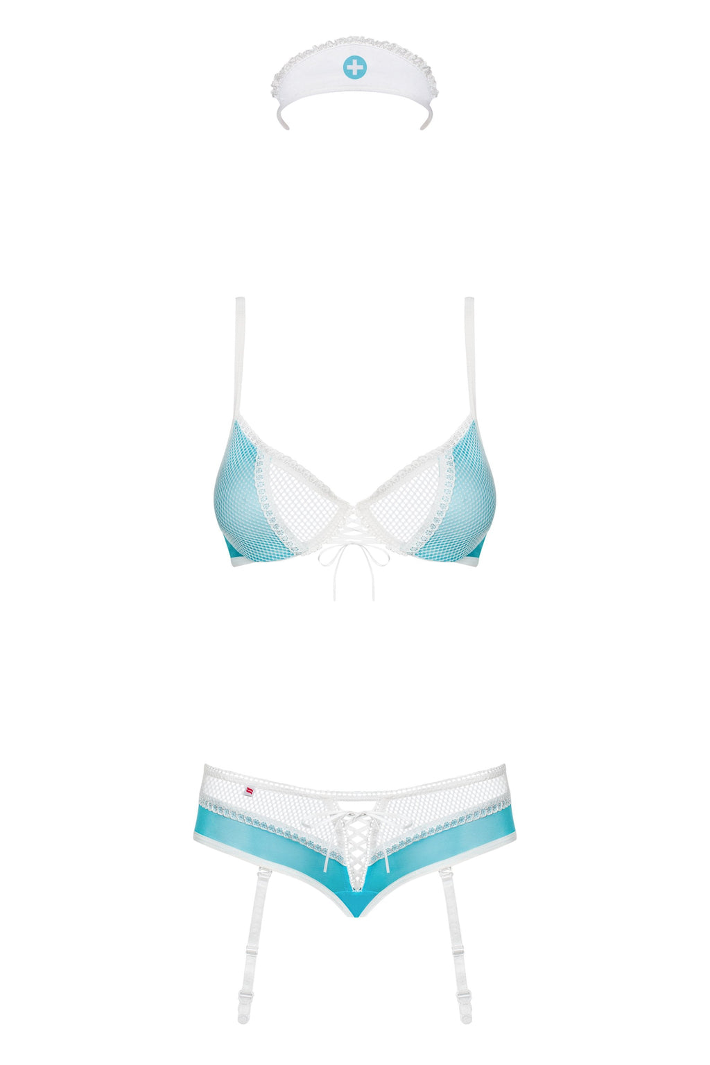 Obsessive 834-CST-6 L/XL, Conjunto de lencería, Azul, Transparente, Blanco, Elastano, Poliamida, L/XL, Estampado, 32 - 40 mm
