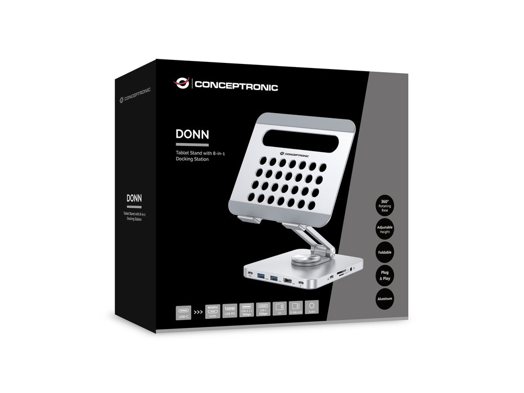 Conceptronic DONN26G, Carro para administración de tabletas, Plata, Aluminio, Tableta, 100 W, MicroSD (TransFlash), SD, SDHC, SDXC