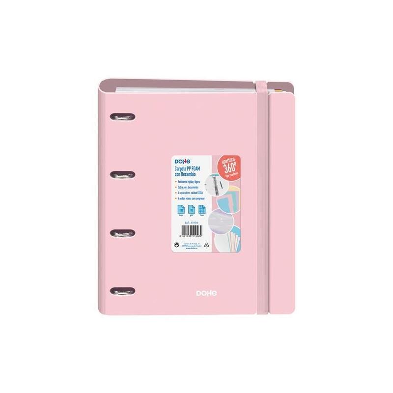 Dohe Carpeta Anillas Mixtas 4x35mm Recambio A4 100h 5x5mm 90gr 4 Separadores Polyfoam Rosa Pastel