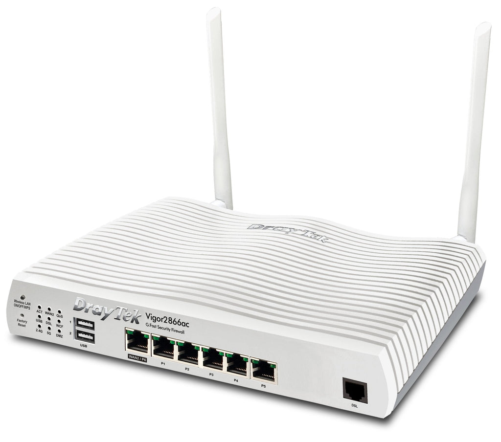 DrayTek Vigor 2866Vac, Wi-Fi 5 (802.11ac), Doble banda (2,4 GHz / 5 GHz), Ethernet, ADSL, Blanco, Router de sobremesa