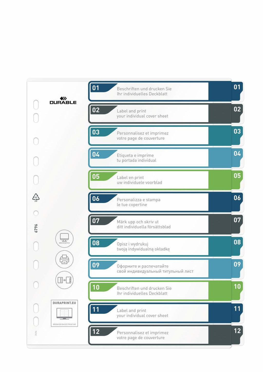Durable 679627 lengüeta de índice Separador en blanco con pestaña Polipropileno (PP) Multicolor