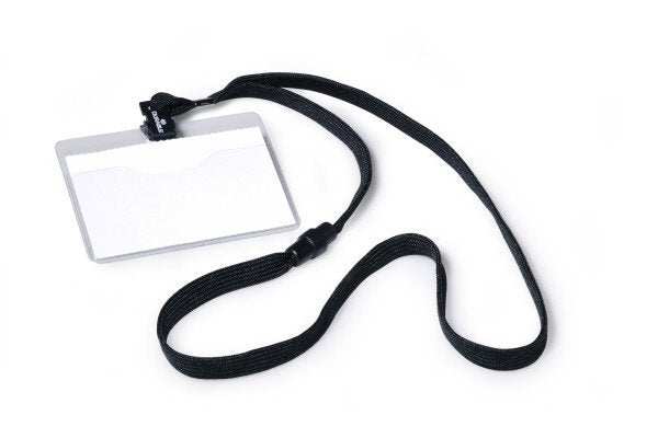 Portanombres de PVC duro con cinta con cierre de seguridad. El cierre de seguridad se abre inmediatamente si la cinta queda atrapada o enganchada. Modelo abierto para retirar rápidamente la etiqueta. Incluye etiqueta en blanco. Medidas interiores: 60 x 90 mm (Al x An).