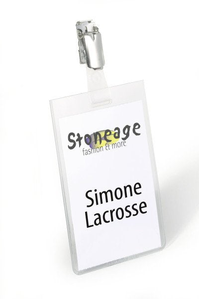 Con clip giratorio. Fabricado en plástico resistente altamente transparente. Modelo cerrado para proteger la etiqueta. Medidas: 90 x 60 mm (Al x An).
