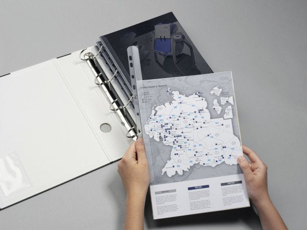 Vainas de sujeción con perforación universal. Longitud: 297 mm (A4), Anchura: 14,5 mm, Capacidad: 3 mm, Capacidad hojas: aprox. 30.